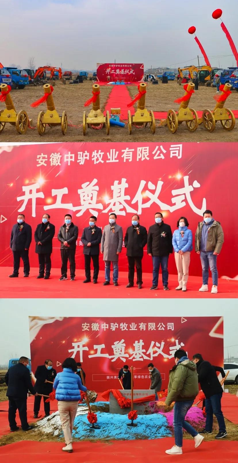 1月15日上午9時,匯鑫集團旗下,安徽中驢牧業(yè)毛驢產業(yè)園開工建設奠基儀式在潁上縣黃橋鎮(zhèn)舉行。潁上縣農村農業(yè)局局長王寅,匯鑫集團董事長程學勇,黃橋鎮(zhèn)黨委書記劉國東、鎮(zhèn)長王卓,匯鑫集團副總經(jīng)理王坤,中驢牧業(yè)總經(jīng)理張青等領導出席開工奠基儀式。